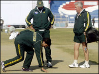 भारत के कप्तान राहुल द्रविड़ ने कहा है कि पाकिस्तान को पिच के बारे में कुछ करना चाहिए ताकि सिरीज़ का निराशाजनक अंत न हो. भारत और पाकिस्तान के बीच पहले दो टेस्ट मैच ड्रॉ ख़त्म हुए. लाहौर टेस्ट के ड्रॉ ख़त्म होने के बाद बुधवार को फ़ैसलाबाद में हुए दूसरे टेस्ट का भी फ़ैसला नहीं हो पाया. तीसरा टेस्ट 29 जनवरी (रविवार) से कराची में शुरू हो रहा है. फ़ैसलाबाद टेस्ट ड्रॉ होने के बाद पत्रकारों से बातचीत में भारतीय कप्तान राहुल द्रविड़ ने कहा, "अगर इसी तरह का विकेट तैयार किया गया तो ये सिरीज़ ड्रॉ हो जाएगी. विकेट तैयार करना मेरे हाथ में नहीं है. लेकिन विकेट ऐसी होनी चाहिए जो बल्लेबाज़ और गेंदबाज़ दोनों की मदद करें." द्रविड़ ने कहा कि क्रिकेट के लिए यह महत्वपूर्ण है कि अच्छी विकेट तैयार की जाए ताकि लोग क्रिकेट देखने का आनंद उठा सकें. फ़ैसला पाकिस्तान के कप्तान इंज़माम-उल-हक़ ने कहा कि उन्होंने फ़ैसलाबाद टेस्ट का पाँचवें दिन इसलिए पारी समाप्त घोषित नहीं की क्योंकि वे आख़िरी टेस्ट के लिए अपने गेंदबाज़ों को तरोताज़ा रखना चाहते थे. इंज़माम ने कहा, "पाँचवें दिन हम लंच के बाद पारी समाप्त घोषित करने की सोच रहे थे. लेकिन इस विकेट पर तीन घंटे के अंदर किसी टीम को आउट करना मुश्किल था और हमारे तेज़ गेंदबाज़ों की कोशिश बेकार ही जाती." पाकिस्तान के कप्तान ने उम्मीद व्यक्त की कि कराची का विकेट अच्छा होगा और उस टेस्ट में कोई नतीजा निकल पाएगा. इंज़माम ने गेंदबाज़ों की प्रशंसा की और कहा कि इस विकेट पर गेंदबाज़ी करना आसान नहीं था लेकिन गेंदबाज़ों ने काफ़ी मेहनत की. पाकिस्तान की दूसरी पारी 490 रनों पर ख़त्म हुई. लेकिन कप्तान इंज़माम और शोएब मलिक मैदान पर बल्लेबाज़ी के लिए नहीं उतरे. और जब भारतीय टीम औपचारिकता के लिए दूसरी पारी खेलने उतरी तो गेंदबाज़ी की शुरुआत शाहिद अफ़रीदी और युनूस ख़ान ने की. 'सलाह द्रविड़ की' पाकिस्तान की दूसरी पारी में शानदार 194 रन बनाने वाले पाकिस्तान के उप कप्तान युनूस ख़ान ने स्वीकार किया कि भारतीय टीम के कप्तान राहुल द्रविड़ की सलाह के कारण ही उनका फ़ॉर्म अच्छा हुआ है.