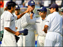 अफ़रीदी के आउट होने के बाद उनका साथ निभाने आए अब्दुल रज़्ज़ाक़. दोनों ने अच्छी बल्लेबाज़ी की और तीसरे दिन का खेल ख़त्म होने तक स्कोर को 511 रनों तक ले गए. इस बीच फ़ैसल इक़बाल ने अपने टेस्ट जीवन का पहला शतक पूरा किया. वे 103 रन बनाकर नाबाद हैं. जबकि रज़्ज़ाक़ 44 रन बनाकर नॉट आउट हैं. भारतीय गेंदबाज़ों के लिए मुश्किल बात ये रही कि न तो तेज़ गेंदबाज़ और न ही स्पिनर कोई विशेष प्रभाव डाल पा रहे थे. अनिल कुंबले को विकेट से थोड़ी सहायता ज़रूर मिली और उन्होंने दो विकेट भी हासिल किए. लेकिन वे पाकिस्तानी खिलाड़ियों की ज़बरदस्त बल्लेबाज़ी पर लगाम नहीं लगा पाए. वैसे तो पाकिस्तान ने पहली पारी के आधार पर सिर्फ़ सात रनों की बढ़त हासिल की है. लेकिन पहली पारी के आधार पर उसकी कुल बढ़त अब 518 रनों की हो गई है. भारत ने पहली पारी में सिर्फ़ 238 रन बनाए थे. अभी कराची टेस्ट के दो दिन बाक़ी हैं और इतने बड़े स्कोर का पीछा करना भारत के लिए काफ़ी मुश्किल नज़र आता है. |