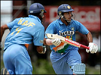 इसके बाद मैदान पर उतरे सुरेश रैना लेकिन वे भी बेअसर साबित हुए. जब भारत का स्कोर केवल 28 रन था तो एक बार फिर ब्रैडशॉ की गेंदबाज़ी का जादू चला और रैना केवल सात रन बनाकर आउट हो गए. इसके कुछ ही देर बाद कप्तान राहुल द्रविड़ भी 15 रन के व्यक्तिगत स्कोर पर आउट हो गए. उन्हें कॉलिमोर ने सरवन के हाथों कैच कराया. इसके बाद मोहम्मद कैफ़ और युवराज सिंह ने सँभल कर खेलते हुए भारतीय पारी को मज़बूती प्रधान की. युवराज 52 रन बनाकर एडवर्ड्स की गेंद पर विकेटकीपर बॉव के हाथों आउट हुए. उनके आउट होने के बाद कैफ़ का साथ देने महेन्द्र सिंह धोनी आए. कैफ़ को 62 रन के व्यक्तिगत स्कोर पर ब्रैवो ने बोल्ड कर दिया. कैफ़ ने अपनी पारी में पाँच चौके लगाए. उनके आउट होने के बाद धोनी का साथ देने आए इरफ़ान पठान. लेकिन वह शीघ्र ही 8 रन बनाकर ब्रैवो की गेंद का शिकार बन गए. पठान के बाद बल्लेबाज़ी करने आए अजीत अगरकर, लेकिन वो खाता खोले बिना पैवेलियन लौट गए. पारी समाप्ति के समय धोनी 46 रन बना कर और रमेश पोवर बिना कोई रन बनाए खेल रहे थे. | इससे जुड़ी ख़बरें टेस्ट टीम में सुरेश रैना को जगह मिली24 मई, 2006 | खेल वेस्टइंडीज ने तीसरा वनडे भी जीता23 मई, 2006 | खेल वेस्टइंडीज़ ने एक रन से मैच जीता20 मई, 2006 | खेल भारत-वेस्टइंडीज़ मैच का स्कोरकार्ड20 मई, 2006 | खेल 'पुराने फ़ॉर्म में नहीं लौट सकेंगे सचिन'19 मई, 2006 | खेल भारत-वेस्टइंडीज़ मैच का स्कोरकार्ड18 मई, 2006 | खेल पोवार-श्रीसंत का खेलना मुश्किल17 मई, 2006 | खेल भारत ने जमैका को 116 रनों से हराया16 मई, 2006 | खेल इंटरनेट लिंक्स बीबीसी बाहरी वेबसाइट की विषय सामग्री के लिए ज़िम्मेदार नहीं है. | |||||||||||||||||||||||||||||||||||||||||||||||||||||||||||||||||||||||||||||||||||||||||||||