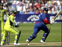इंग्लैंड के 144 रनों के जवाब में पाकिस्तान की शुरुआत कोई ख़ास नहीं रही. शोएब मलिक 16 रन बनाकर आउट हुए तो युनूस ख़ान अपना खाता नहीं खोल पाए. लेकिन उसके बाद पिच पर आए शाहिद अफ़रीदी ने जैसे रनों की बौछार कर दी. उन्होंने सिर्फ़ 10 गेंदों पर पाँच चौके और एक छक्के की बदौलत 28 रन बनाए. उन्होंने जैसे पाकिस्तान के जीत की आधार रख दी. मोहम्मद हाफ़िज़ 46 रन बनाकर रन आउट हुए. मोहम्मद युसूफ़ ने 20 रन बनाए. जबकि कप्तान इंज़माम उल हक़ 11 और अब्दुल रज़्ज़ाक़ 17 रनों पर नाबाद रहे. पाकिस्तान और इंग्लैंड के बीच पाँच एक दिवसीय मैचों की सिरीज़ 30 अगस्त से शुरू हो रही है. | इससे जुड़ी ख़बरें आईसीसी की कार्यकारी बोर्ड की बैठक रद्द28 अगस्त, 2006 | खेल आईसीसी पर बरसे अंपायर डेरेल हेयर28 अगस्त, 2006 | खेल बॉब वूल्मर ने आरोपों का खंडन किया28 अगस्त, 2006 | खेल 'डेरेल चाहते तो मामला वहीं सुलझ जाता'26 अगस्त, 2006 | खेल 'पाकिस्तान वन-डे सीरीज़ खेलेगा'26 अगस्त, 2006 | खेल अंपायर हेयर ने इस्तीफ़े की पेशकश की 25 अगस्त, 2006 | खेल क्रिकेट विवाद की सुनवाई जल्द ही होगी24 अगस्त, 2006 | खेल 'अंपायर का फ़ैसला नहीं बदला जा सकता'23 अगस्त, 2006 | खेल इंटरनेट लिंक्स बीबीसी बाहरी वेबसाइट की विषय सामग्री के लिए ज़िम्मेदार नहीं है. | |||||||||||||||||||||||||||||||||||||||||||||||||||||||||||||||||||||||||||||||||||||||||||||