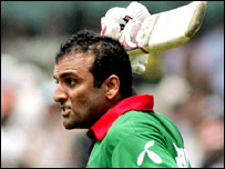 भारत को 39वें ओवर में तीसरा विकेट मिला जब जावेद उमर दुर्भाग्यपूर्ण तरीक़े से रन आउट हो गए. उन्होंने 80 रन बनाए. सक़ीबुल हसन भी ज़्यादा देर नहीं टिक पाए लेकिन इस बीच उन्होंने अपना अर्धशतक ज़रूर पूरा कर लिया. ओवर कम बचे हुए थे. इसलिए मोहम्मद अशरफ़ुल ने आक्रमक पारी खेली और 29 रन बनाए. आफ़ताब अहमद ने 16 और मोहम्मद रफ़ीक ने 11 रन बनाए. निर्धारित 47 ओवर में बांग्लादेश का स्कोर रहा सात विकेट पर 250 रन. भारत की ओर से दिनेश मोंगिया ने तीन विकेट लिए, रमेश पोवार को दो और वीरेंदर सहवाग को एक विकेट मिला. |