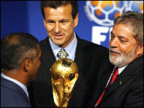 वर्ष 2014 का फुटबॉल वर्ल्ड कप ब्राज़ील में आयोजित किया जाएगा. फीफ़ा वर्ल्ड कप का आयोजन बारी-बारी से अलग महाद्वीपों में कराने की नीति का पालन करती है, उसी के अनुरूप इस बार दक्षिणी अमरीका की बारी थी. दक्षिण अमरीका से वर्ल्ड कप आयोजित करने की दावेदारी करने वाला अकेला देश ब्राज़ील ही था. ब्राज़ील के राष्ट्रपति लूला डि सिल्वा ने कहा, "फुटबॉल हमारे लिए खेल से बढ़कर है, यह पूरे देश की दीवानगी है.". ब्राज़ील वह देश है जिसके नाम अब तक पाँच बार वर्ल्ड कप जीतने का रिकॉर्ड है, इससे पहले भी 1950 में ब्राज़ील वर्ल्ड कप का आयोजन कर चुका है. वर्ष 1978 में अर्जेंटीना में वर्ल्ड कप का आयोजन किया गया था जिसके बाद दक्षिण अमरीका में यह आयोजन फिर नहीं हुआ. 2014 में ब्राज़ील में आयोजन का मतलब है 36 वर्ष के अंतराल के बाद वर्ल्ड कप की मेज़बानी किसी दक्षिण अमरीकी देश को मिल रही है. ब्राज़ील में 64 वर्षों के अंतराल के बाद विश्व कप का आयोजन किसी चुनौती से कम नहीं है, ब्राज़ील सरकार ने कहा है कि वे समय पर अपनी तैयारियाँ पूरी कर लेंगे और स्टेडियमों को बेहतर बना दिया जाएगा. ब्राज़ील के अकेला दावेदार होने की वजह से फीफा के विकल्प बहुत सीमित थे लेकिन फीफा के अध्यक्ष ने आशा प्रकट की है कि फुटबॉल के प्रति ब्राज़ील के लगाव को देखते हुए कहा जा सकता है कि वे बहुत लगन से आयोजन करेंगे. | इससे जुड़ी ख़बरें रोनाल्डिनियो बने 'प्लेयर ऑफ़ द ईयर'20 दिसंबर, 2004 | खेल की दुनिया जर्मनी और अर्जेंटीना सेमीफ़ाइनल में19 जून, 2005 | खेल की दुनिया ब्राज़ील हारा, मैक्सिको सेमीफ़ाइनल में20 जून, 2005 | खेल की दुनिया जर्मनी को हराकर ब्राज़ील फ़ाइनल में25 जून, 2005 | खेल की दुनिया फ़ाइनल में ब्राज़ील और अर्जेंटीना26 जून, 2005 | खेल की दुनिया | |||||||||||||||||||||||||||||||||||||||||||||||||||||||||||||||||||||||||||||||||||||||||||||