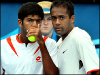 अब सानिया और भूपति का मुक़ाबला दूसरी वरीयता प्राप्त लीसा रेमंड और साइमन एस्पेलिन की जोड़ी से होगा. लेकिन भारत के अनुभवी लिएंडर पेस पुरुषों के डबल्स मुक़ाबले से बाहर हो गए हैं. उनकी और ऑस्ट्रेलिया के पॉल हेनली की जोड़ी को भारत के ही रोहन बोपन्ना और अमरीका के राजीव राम की जोड़ी ने 6-3, 3-6, 7-6 से हरा दिया. पहला सेट 6-3 से हारने के बाद पेस और हेनली ने शानदार वापसी की और दूसरा सेट 6-3 से जीत लिया. तीसरा सेट काफ़ी संघर्षपूर्ण रहा और टाई ब्रेकर में गया. जिसे बोपन्ना और राजीव राम ने जीत लिया. दूसरी ओर महेश भूपति और बहामास के मार्क नोलेस की जोड़ी ने दूसरे दौर का मैच आसानी से जीत लिया. | इससे जुड़ी ख़बरें वीनस से हारीं सानिया मिर्ज़ा19 जनवरी, 2008 | खेल की दुनिया सानिया ने डबल्स मुक़ाबला जीता16 जनवरी, 2008 | खेल की दुनिया शरापोवा, हार्डिन और नडाल तीसरे दौर में16 जनवरी, 2008 | खेल की दुनिया हिंगिस पर दो साल की पाबंदी04 जनवरी, 2008 | खेल की दुनिया मार्टिना ने संन्यास की घोषणा की01 नवंबर, 2007 | खेल की दुनिया सानिया की रैंकिंग गिरकर 32 हुई22 अक्तूबर, 2007 | खेल की दुनिया सानिया मिर्ज़ा जापान ओपन से बाहर04 अक्तूबर, 2007 | खेल की दुनिया नडाल यूएस ओपन से बाहर हुए05 सितंबर, 2007 | खेल की दुनिया | |||||||||||||||||||||||||||||||||||||||||||||||||||||||||||||||||||||||||||||||||||||||||||||