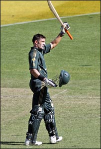 उनके साथ ओपन करने आए हेडन भी काफी संघर्ष करते रहे और 53 गेंदों में वो महज़ 23 रन ही बना सके. एंड्र्यू साइमंड्स और कप्तान रिकी पोंटिंग एक बार फिर नाकाम रहे. साइमंड्स सिर्फ चार रन बना कर महरूफ़ की गेंद पर विकेटकीपर कुमार संगकारा को कैच दे बैठे. साइमंड्स से पहले रिकी पोंटिंग को भी मैदान पर एक-एक रन के लिए संघर्ष करना पड़ रहा था. वो 34 गेंदों पर सिर्फ 11 रन बनाकर रन आउट हो गए. पोंटिंग बेहद खराब फॉर्म में चल रहे हैं. पिछले सात मैचों में वो महज़ चौंसठ रन बना पाए हैं. इसके बाद माइकल क्लार्क और माइक हसी ने मैदान पर काफी देर मोर्चा संभाला. दोनों काफी देर संभल-संभल कर खेल रहे थे. अभी क्लार्क ने अपना अर्ध शतक पूरा किया ही था कि मुथैया मुरलीधरन की एक फ़ुलटॉस पर वो उन्हें ही कैच दे बैठे. |