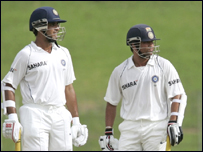 भारतीय पारी की शुरुआत वीरेंद्र सहवाग और गौतम गंभीर ने की. शुरुआत तो तेज़ी से हुई लेकिन छठे ओवर में ही सहवाग अपना विकेट गंवा बैठे. वे केवल 25 रन बना पाए. इसके बाद गंभीर को 39 के निजी स्कोर पर मुरलीधरन ने अपना शिकार बनाया. भारतीय विकेट गिरना का सिलसिला इसके बाद से लगातार जारी रहा. द्रविड़ 14 ही रन बना पाए. उन्हें अजंता मेंडिस ने पवेलियन पहुँचाया. उस समय भारत का स्कोर था तीन विकेट पर 79 रन. भारत को सबसे ज़्यादा नुकसान मुरली ने ही पहुँचाया. सचिन से लोगों को बड़ी उम्मीदें थीं. इस मैच से पहले वे सर्वाधिक टेस्ट रन बनाने के रिकॉर्ड से 172 रन दूर थे. लेकिन मुरली ने उन्हें केवल 27 रन पर आउट कर दिया. इसके बाद गांगुली भी 23 रन पर मुरली का ही शिकार बने. ग़ज़ब फ़ॉर्म में दिख रहे मुरली ने इसके बाद कार्तिक को भी सस्ते में निपटा दिया. दिन का खेल ख़त्म होने पर लक्ष्मण 19 और कुंबले एक रन के स्कोर पर खेल रहे थे और भारत का कुल स्कोर था छह विकेट के नुकसान पर केवल 159 रन. श्रीलंका की ओर से मुरलीधरन ने चार विकेट और मेंडिस ने एक विकेट लिया. | इससे जुड़ी ख़बरें दूसरा दिन श्रीलंकाई बल्लेबाज़ों के नाम24 जुलाई, 2008 | खेल की दुनिया नए नियम के तहत कुंबले की चुनौती24 जुलाई, 2008 | खेल की दुनिया मेंडिस ही एकमात्र ख़तरा नहीं हैं: द्रविड़21 जुलाई, 2008 | खेल की दुनिया ट्वेन्टी-20 क्रिकेट का जिन्न19 जुलाई, 2008 | खेल की दुनिया 'इंग्लैंड दौरे में मैच स्थल नहीं बदलेंगे'16 जुलाई, 2008 | खेल की दुनिया 'मुरलीधरन पेश करेंगे असली चुनौती'17 जुलाई, 2008 | खेल की दुनिया टेस्ट रैंकिंग में भारत एक पायदान नीचे09 जुलाई, 2008 | खेल की दुनिया धोनी को छुट्टी, युवी की छुट्टी08 जुलाई, 2008 | खेल की दुनिया | |||||||||||||||||||||||||||||||||||||||||||||||||||||||||||||||||||||||||||||||||||||||||||||