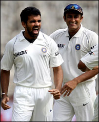 दोनों स्कोर को 77 रन तक ले गए. गौतम गंभीर मिचेल जॉनसन की एक धीमी गेंद पर चकमा खा गए और बोल्ड हो गए. उन्होंने 29 रन बनाए. सचिन तेंदुलकर काफ़ी संभल कर खेल रहे थे और लग रहा था कि वे लारा का रिकॉर्ड तोड़ देंगे. लेकिन ऐसा हो न सका. सचिन 49 रन बनाकर व्हाइट की गेंद पर पवेलियन लौट गए. लेकिन इससे पहले उन्होंने वीवीएस लक्ष्मण के साथ मिलकर भारतीय पारी को मज़बूती दी. इसके बाद सौरभ गांगुली मैदान पर आए. लेकिन ख़राब रोशनी के कारण बार-बार मैच रोकना पड़ा. मैच जब ख़त्म हुआ तो भारत का स्कोर था चार विकेट के नुक़सान पर 177 रन. वीवीएस लक्ष्मण 42 और गांगुली 26 रन बनाकर नाबाद रहे. |