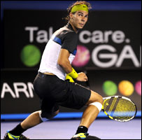 उनका कोर्ट के एक सिरे से दूसरे सिरे तक दौड़ना, गेंद का पीछा करना और फिर असंभव से एंगिल से जीतने वाला शॉट लगाना सम्मोहित करने वाला होता है. दुनिया ने अविश्वास से इस खिलाड़ी की प्रशंसा तो की लेकिन साथ में यह भी सोचा कि ये एक अपवाद हो सकता है जिसकी शारीरिक क्षमता जल्द ही जवाब दे देगी. अभी तक ये तो हुआ नहीं. दुनिया का कोई ऐसा खिलाड़ी नहीं है, जो नडाल के ख़तरनाक फ़ोरहैंड टॉपस्पिन, उनकी गति और उनके नियंत्रण के बोझ से दबा न हो. पूर्व टेनिस खिलाड़ी ब्रैड गिल्बर्ट कहते हैं कि नडाल के साथ रैली में खेलना- पीड़ा में भी एक शिक्षा है. क्या फ़ेडरर अपनी हवा की तरह हरकत और उत्कृष्ट कौशल से इस पीड़ा को सहन कर पाएँगे और विजेता बनेंगे- देखना होगा. |
