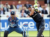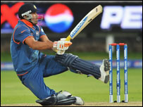 लेकिन हुआ इसका उल्टा. लॉर्ड्स के खचाखच भरे स्टेडियम में भारतीय समर्थकों की नारेबाज़ी के बीच भारतीय टीम हार कर प्रतियोगिता से बाहर हो गई. युवराज सिंह का आउट होना भारत के लिए बड़ा झटका था. क्योंकि वे शानदार फ़ॉर्म में नज़र आ रहे थे. लेकिन इस मैच में वे नौ गेंदों पर 17 रन बनाकर स्टम्प आउट हो गए. उनके आउट होते ही भारतीय टीम दबाव में आ गई और आवश्यक रन गति बढ़ने लगी. भारत की शुरुआत भी अच्छी नहीं हुई थी. रोहित शर्मा सिर्फ़ 12 रन बनाकर आउट हुए तो सुरेश रैना सिर्फ़ दो रन ही बना पाए. बीच में गंभीर और रवींद्र जडेजा ने पारी तो संभाली लेकिन वे तेज़ी से रन नहीं बटोर पाए. कम अनुभवी रवींद्र जडेजा को पहले भेजने का फ़ैसला भारत के लिए उल्टा साबित हुआ. उन्होंने 25 रन बनाए लेकिन उसके लिए 35 गेंदों का सामना किया. भारतीय टीम का ये अहम मैच देखने के लिए मास्टर ब्लास्टर सचिन तेंदुलकर लॉर्ड्स में मौजूद थे. सचिन के अलावा आईपीएल के चेयरमैन ललित मोदी, फ़िल्म अभिनेता सैफ़ अली ख़ान और अभिनेत्री दीपिका पादुकोण भी मैच देखने लंदन पहुँचे. इंग्लैंड की पारी इससे पहले इंग्लैंड ने पहले बल्लेबाज़ी करते हुए 20 ओवरों में सात विकेट पर 153 रन बनाए थे. इंग्लैंड की ओर से केविन पीटरसन ने सर्वाधिक 46 रन बनाए.