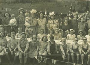 After we moved to West Earlham I got pleurisy. One night the bombing was terrible, but I didn’t have enough strength to get the children into the bomb shelter. My mother had given us a big wooden kitchen table, and I got that against a wall, put cushions underneath, and took the children under with me to “play tents”. I kept them amused by telling them stories about when I was single, working on a gentleman’s farm. I used to go haymaking in summer. It was nice.