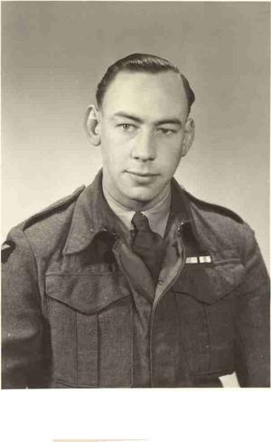 While at his camp we handed in all our uniform, together with our socks, leaving us with just the underclothing we were wearing. We were then issued with khaki battle dress bearing our usual RAF flashes and rank in order that we would not be confused with the enemy whose grey uniform was so near in colour to our own blue-grey attire. Shoes were also handed in to be replaced with boots. No overcoat was supplied, but sewn into an inner pocket of our battle dress was a bar of chocolate for emergency use only. We were then given a kit containing a metel tripod, a tablet of methylated spirit with three cubes, one each of something similar to Oxo, sugar milk and tea together, porridge and a box of matches. We were also given a can of water. All this took place on D-day 6 and we moved to our place of departure on D-day 7.
