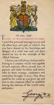 This is my certificate given to every school child at the end of the war.
