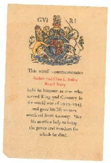 This is a copy of the scroll received from the King commemorating the service of Leonard Stanley.