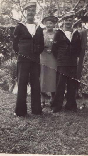 The R.N sailors were well looked after by the South African people and Len and messmate "Titch" Meddings were taken out for a meal in Durban by two Matronly ladies: Mrs Johnson and Mrs Bolthes.