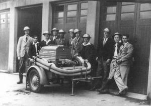 Kingswear Fire Brigade, left to right: Mr King, Mr Thompson, Ted Mardon, Major Goldsmith, Leo Radford, Jack Eveleigh, Roy Kelland, Raymond Hawke, Harry Richardson, Ted Burrows & Nelson Pollard