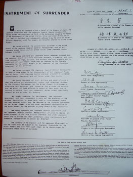Photograph of a copy of the Japanese Instrument of Surrender, 2nd September 1945.
