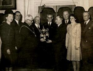 At the end of the War in Europe and the Far East we decided to hold a great Victory Ball in the City Hall on New Year's Eve 1946. There was a great demand for tickets, and for the first time in 7 years we wore evening dress.