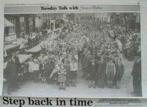 8. The newspaper article is a reprint of he celebrations after the end of the war; all celebrations (Coronation, etc) always went on in the Market Place and this was no exception. My cousin and I are it the front of the left hand group.