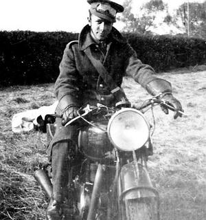 Geoff, the Despatch Rider, on his favourite machine, a Velocette.