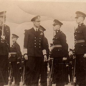 This picture shows King George VI inspecting a contingent of Royal Marines on the Queen Elizabeth. The two Marines he is talking to look no older than 18 and meeting the King would be one of their proudest moments.