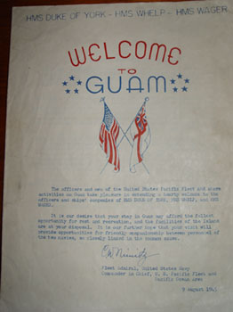 Pamphlet made by the US Navy to welcome the Pacific Fleet to Guam, 9th August 1945.