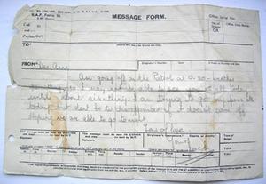 Am going off on the Patrol at 9.30- weather permitting, so I may not be able to see you at all today until about six-thirty. I am trying to get my pass etc. today but don’t be too disappointed if it doesn’t come off. Hoping we are able to go tonight.
