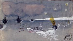 Lofty Pead DSM painted this picture for George Birkin of a night patrol encounter with the enemy in the English Channel 1943.