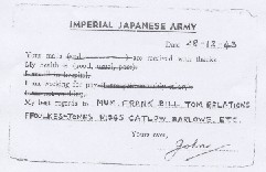 He didn't get home until 1945, because he was right up near the Burma border. He was amongst the last POW's to be released. His mother wrote to him, but the Japanese kept hold of them.