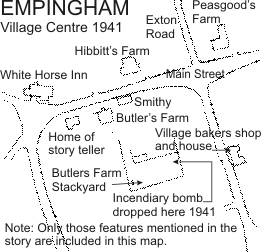 Map showing the position of the only bomb to fall within Empingham in WW2
