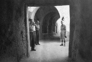 Sgt Len Scott, 'George', Cpl Hornsey Metcalfe and Sgt Charlie Hildretch in the tunnels of Touggourt, 1944