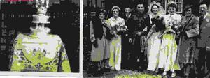 We had a wedding cake. The cake was made up with fruit which had been saved up by our neighbours. The bottom tier of the cake was actually cardboard, covered in silver paper. The sandwiches were of potted meat spread and we had glasses of port and lemon. We all thought it was a really good spread, all thanks to the many people who kindly helped!
