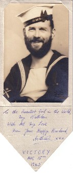 “To the Sweetest Girl in the World, my Kathleen with all my love from your Happy Husband Arthur xxx Victory August 15th 1945”