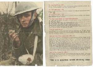 Three pages are devoted to German Propaganda leaflets and this sent me immediately to my Army Album to have another look at my own collection.