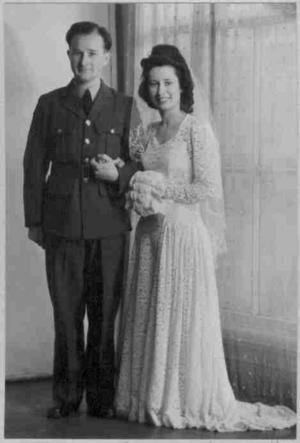 It was at one of these dances that I met my future wife, Lily Whiting, in September 1942 — she lived in London and was a hospital nurse. She had relatives in Haverhill whom she visited quite frequently. A few weeks later I was sent to Waterbeach on an N.C.O. training course after which I was promoted to corporal. In May 1944 Lily and I were married in Sturmer church for which I was allowed a 48-hour pass. My parents managed to travel by train from Chester to Haverhill to attend the wedding which I appreciated very much. My pal George was Best Man.