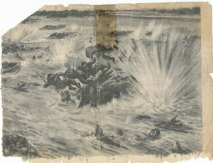 The front of the leaflet graphically depicts British troops being shelled as they cross the river, the back of the leaflet includes some of the text I now give below.
