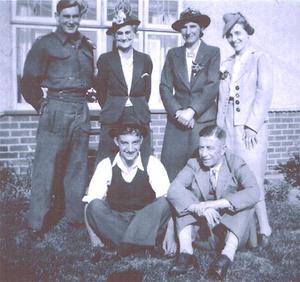 On Leave June 1940. Little Morton Road, North Wingfield, Derbyshire. Ted, Grandma, Mum, Nancy, Brother Jeff and Dad.