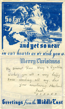 The envelope in which it came is a special Christmas envelope reading 'Xmas Greetings by Airmail' and it's stamped 'Passed by censor'.