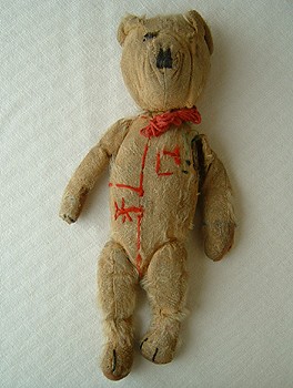 Very worn out teddy which went around 5 children in 2 families.