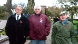 Friday 11 November 2005 (Left to right): Billy Gribbin, Ray Devlin, John McCrickett. They are former members of Whitehaven Sea Cadets. The photograph was taken following an Armistice Day Memorial Service at St Nicholas's Church Gardens [Photograph by Joseph Ritson]