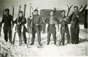During the summer the prisoners were taken for walks in the mountains and in the winter they were taken to the local Alpine arena and were taught to ski Eddie, by all accounts, became quite a good skier. The arena has a ski jump and one day for a bet of cigarettes some prisoners went down the slope, not on skis but on a toboggan!