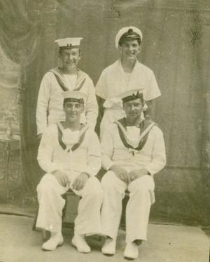 This photograph shows four sailors - One of whom is my Father — Bert Hunt.