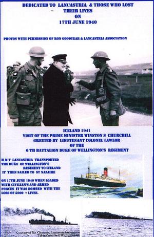 In recent years, I have written to the local paper reminding readers of the disaster, and after good publicity, I visited Ron Goodyear who was on the Lancastria’s penultimate voyage to Iceland. From a photograph that he took, and the photos taken by Sailor Clements on the Highlander, I have made the montage, which is a very small dedication to the Lancastria and those who lost their lives.