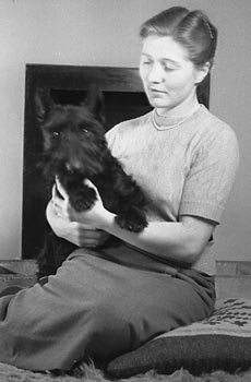 My wife Minna and her terrier Ib Fidelius Aedeltand (named for a dog in a Danish story) in Warlingham in 1941.