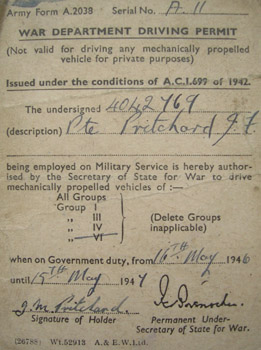It says 'not valid for driving mechanically propelled vehicles for private purposes' but he never took his test after the war, they let him have his licence anyway!