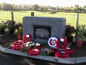 And so, in October 2003, it came to be – an elegantly simple blue-brick memorial built by local volunteers using donated materials, located on a small lay-by near the field. The names are touched with silver - six souls and one survivor. The dedication ceremony was attended by a lone bugler, standard bearers, an honour guard. Local residents streamed into the field to observe the event. The families came, to lay wreaths in respect, to honour their fallen relatives. Representatives from the Royal British Legion and Royal Air Force saluted and spoke their words. The mayor carefully folded the flag. Heads were bowed in prayer. Voices were lifted in praise. Six lives were lost that day, in training for a battle never fought, yet as dead as any who died on the cruel battlefields in Europe. Gone, but remembered still.