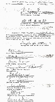 On board to sign and/or observe the signing were representatives of the allied nations. Signing on behalf of the Japanese were Foreign Minister Mamoru Shigemitsu who signed on behalf of the Emperor of Japan (top right signature) and General Yoshijiro Umezo who signed on behalf of Imperial General Headquarters (lower top right signature). The ceremony was conducted by General of the Army Douglas McArthur, Supreme Commander. Signing for the United States was Fleet Admiral Chester W. Nimitz, USN, Commander-in-Chief, Pacific and Pacific Ocean Areas. The signatures below his are as follows: General Hsu Yung-Chang (China), Admiral Sir Bruce Fraser (United Kingdom), Lt. General Derevyanko (Soviet Union), General Sir Thomas Blamey (Australia), Colonel Moore Cosgrove (Canada), General Jacque Lo Clerk (France),Admiral C.E.L. Heifrich (the Netherlands) and Air Marshall Ishitt (New Zealand).