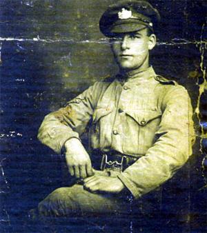 Mr John Bridges in dress uniform of the Gloucester regiment. Perhaps home on leave. He served in the Somme and in Ypres.