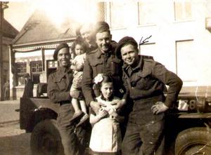 The attached picture shows John Gaughan in Merchtem 1944; he returned to Merchtem for the 60th Anniversay and was given the Freedom of the Town, and also met one of the little girls who are on the photo.