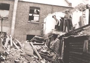Bombed: we were brought out through the top of the small kitched window, showing just above the rubble.