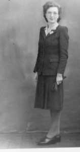 Olive Butcher (nee Markley before 1944)as she was during war, pictured in 1944 in her 'going away' suit - see article 'wartime wedding 24 June 1944'.