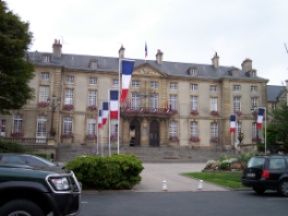 Bayeux Town Hall, summer 2004. Bayeux was the first French city liberated in 1944. Many Normandy Veterans hold fond memories of the friendship and welcome they received from the citizens of Bayeux both in 1944 and in subsequent years. Merci beaucoup ("Thank you!")